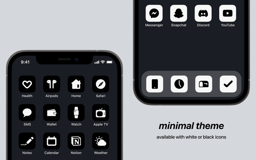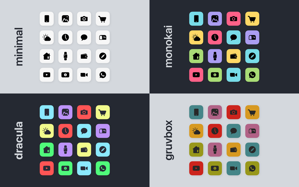 A collection of 100+ custom app icons compatible with iOS and Android. It features a minimal design and is available in four unique colorways inspired by popular code editor color schemes.